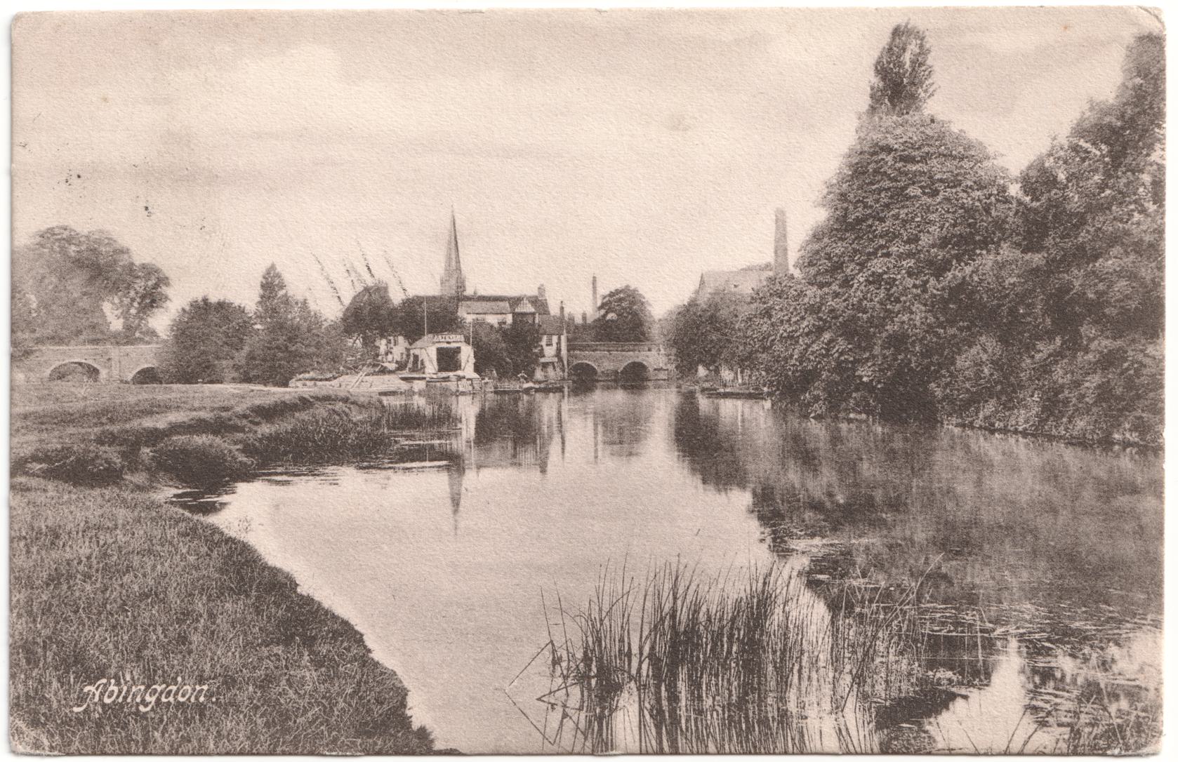 Not 100% sure of the recipient, but a Florence A Carpenter lived at 3 Bedford Park according to the 1901 census. She was married to Arthur B Carpenter, a doctor. A second possibility is her daughter Annie who was unmarried and living at the property in 1901 but was not present in 1911. The card appears to have been sold by WH Hooke, and the photograph appears to be taken by Frith's (45202) who date it to 1900. Duplicate of 19010717-AbingdonWrench186