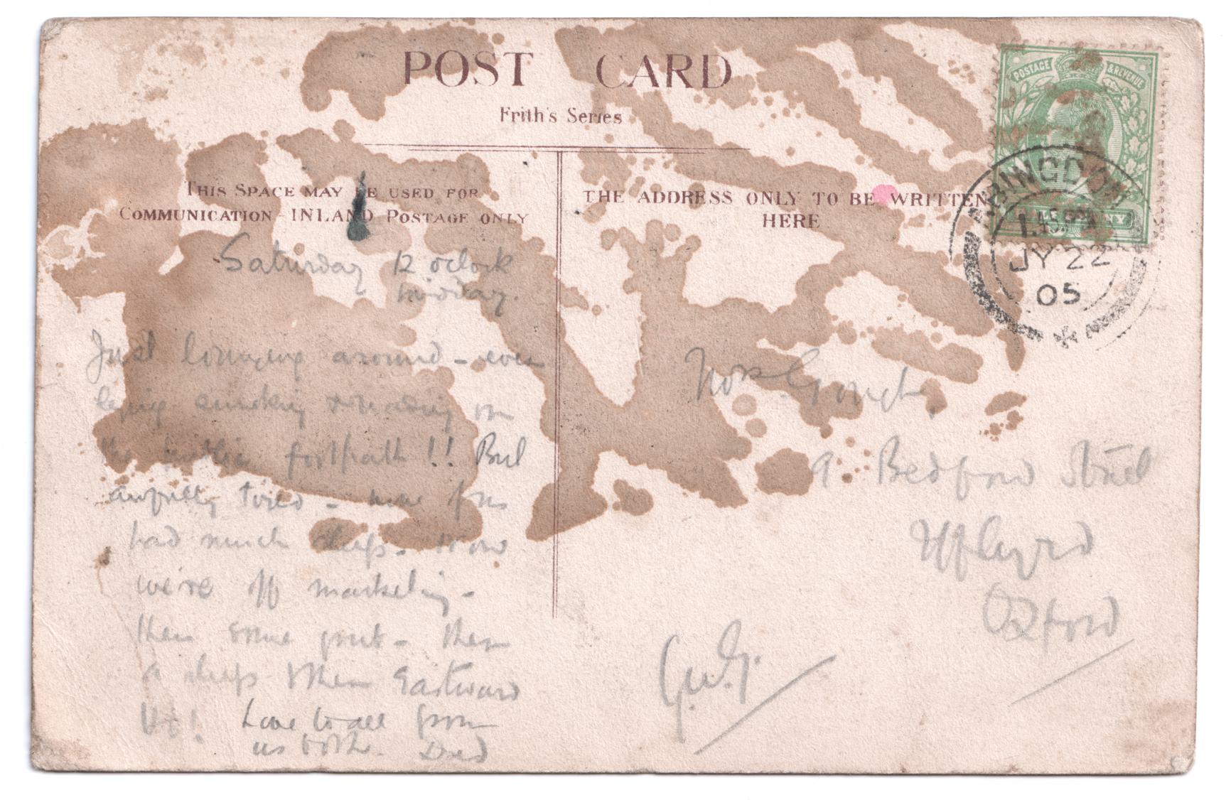| Sent to | Mrs Gouch?, 9 Bedford Street, Iffley, Oxford |