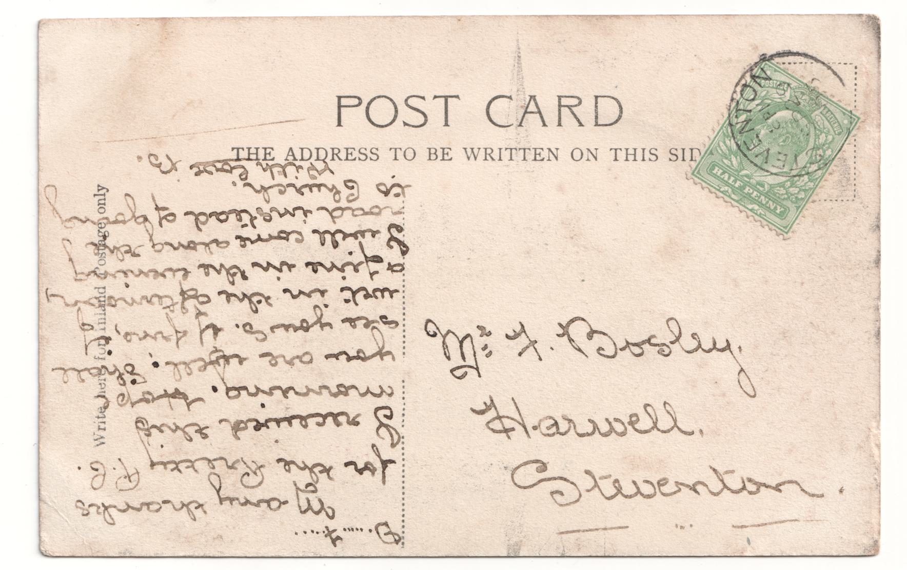 | Sent to | Mr F Bosley, Harwell, Steventon |