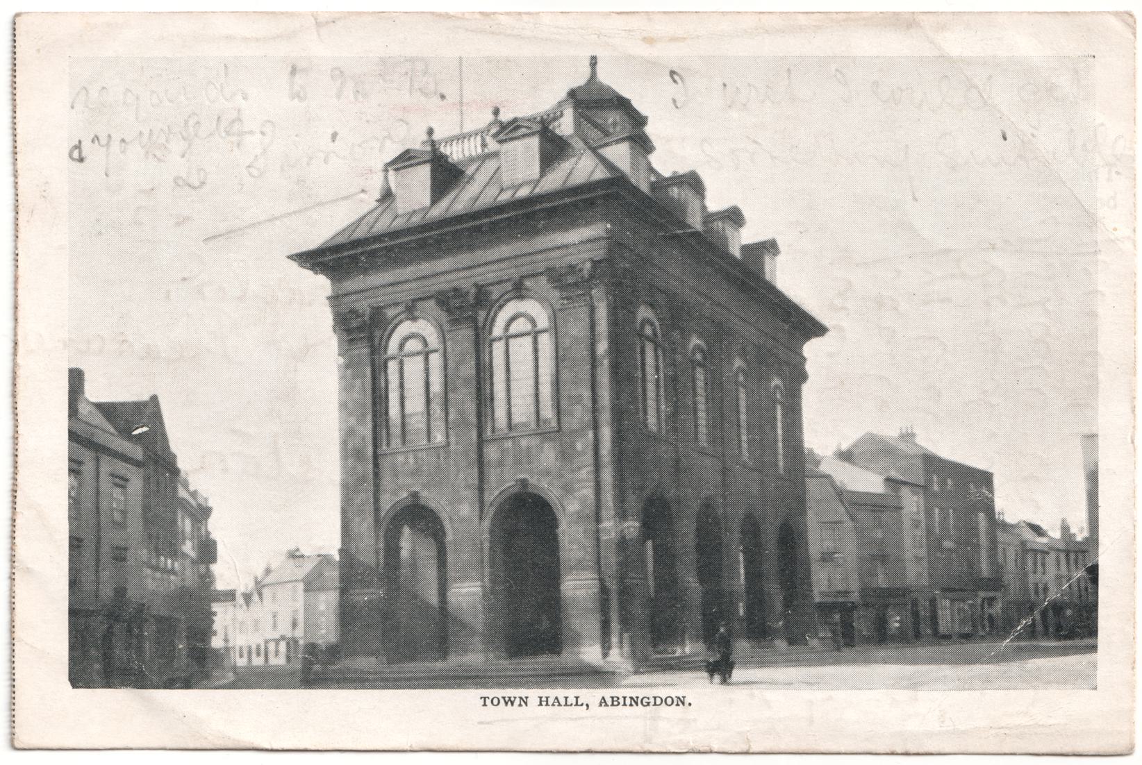 I'm unable to read most of this postcard, and unable to determine who it is addressed to. This postcard is very low quality, and printed on very thin card. Uses the same photo as AbingdonTownHall.