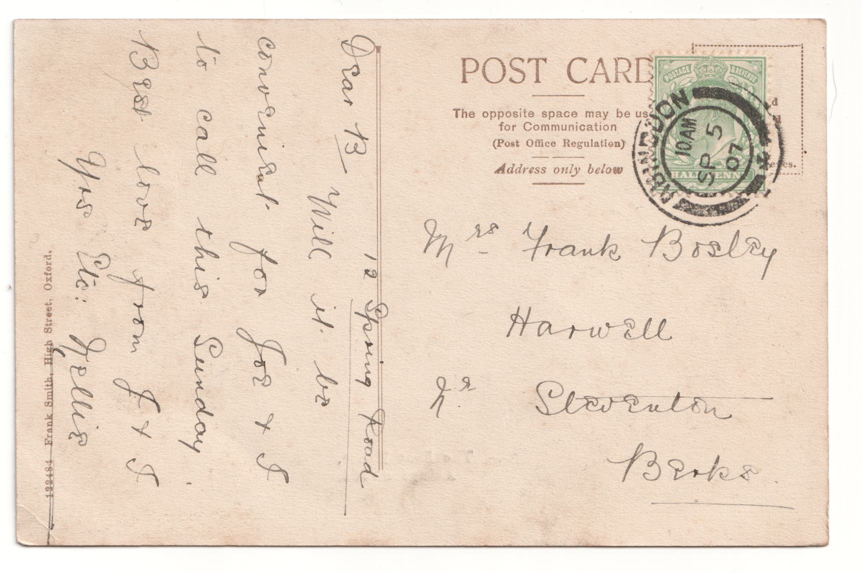 | Sent to | Mrs Frank Bosley, Harwell, Nr Steventon, Berks |