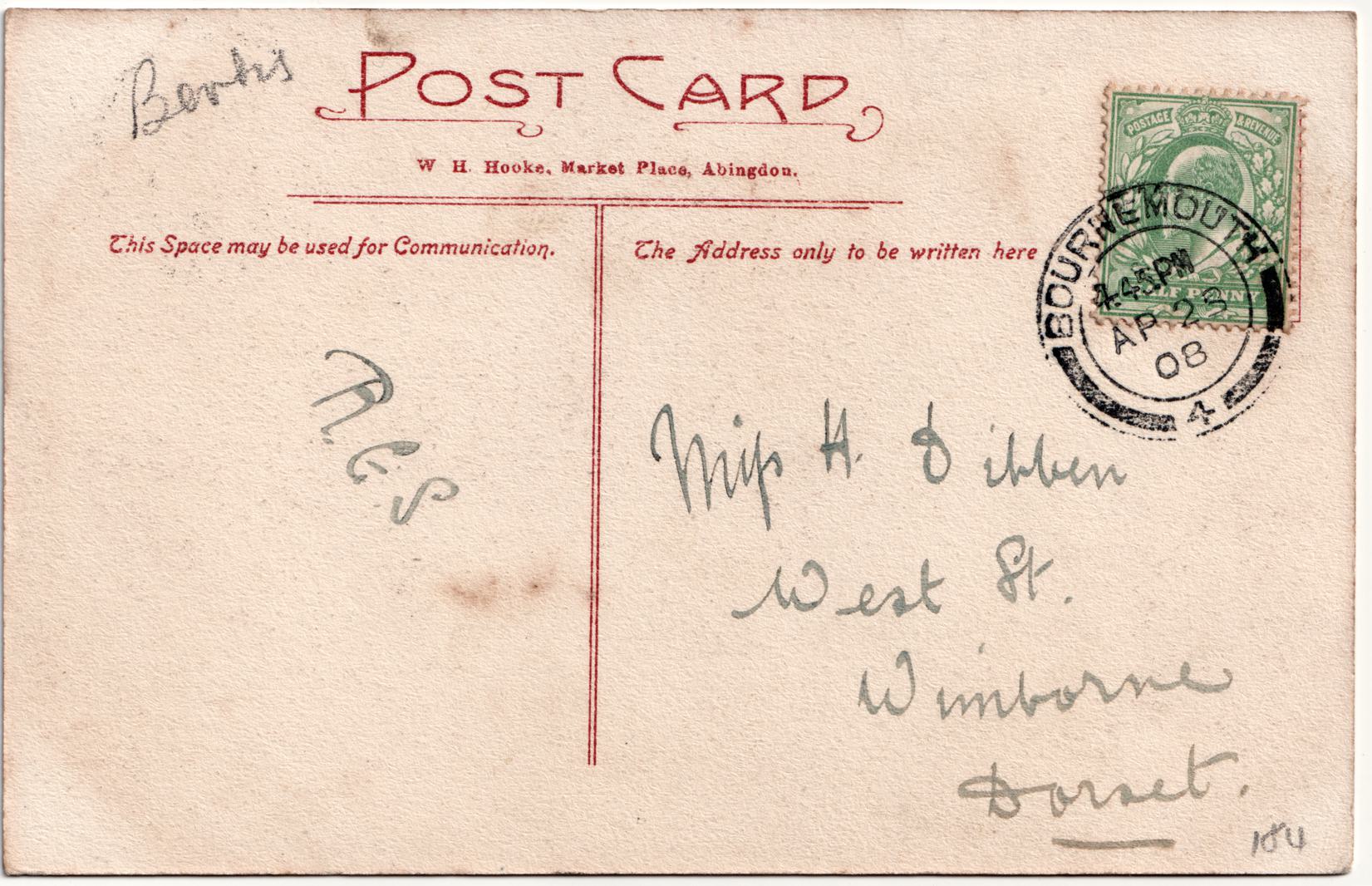| Sent to | Miss H Dibben, West Street, Wimbourne, Dorset |