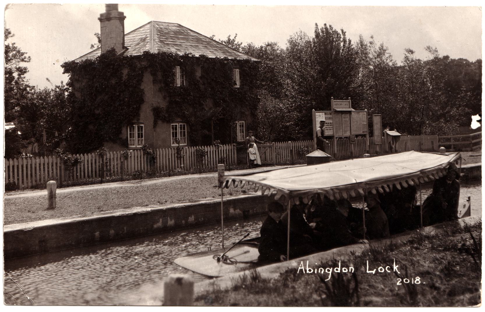 Florence Lilly Hawkes (b. 1886) is listed at this address in the 1901 census. This might be from her older brother William George Hawkes (b. 1881). This photograph is the clearest of the lock keeper's cottage that I've collected. Some of the posters on the board can even be read including a notice for the sale of Shiplake Mills by Simmons and Son. Simmons and Son are still in business and operating from Henley.