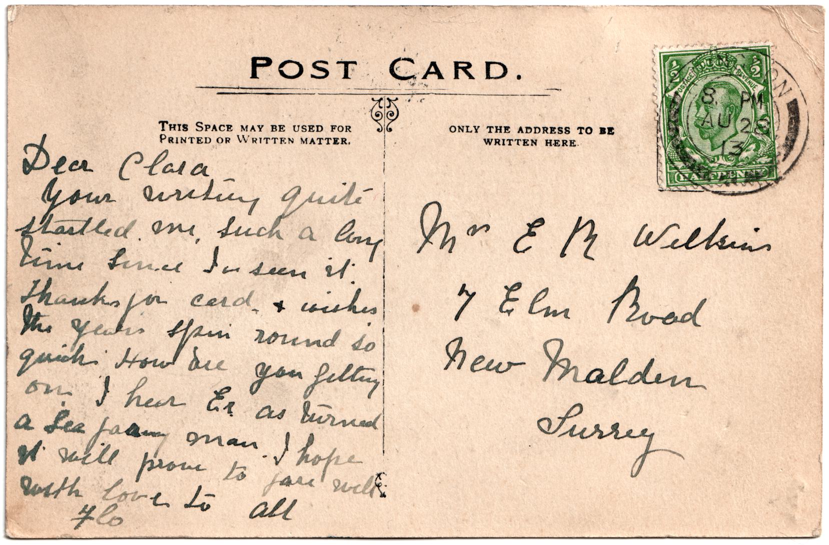| Sent to | Mrs E M Willaism, 7 Elm Road, New Malden, Surrey |
