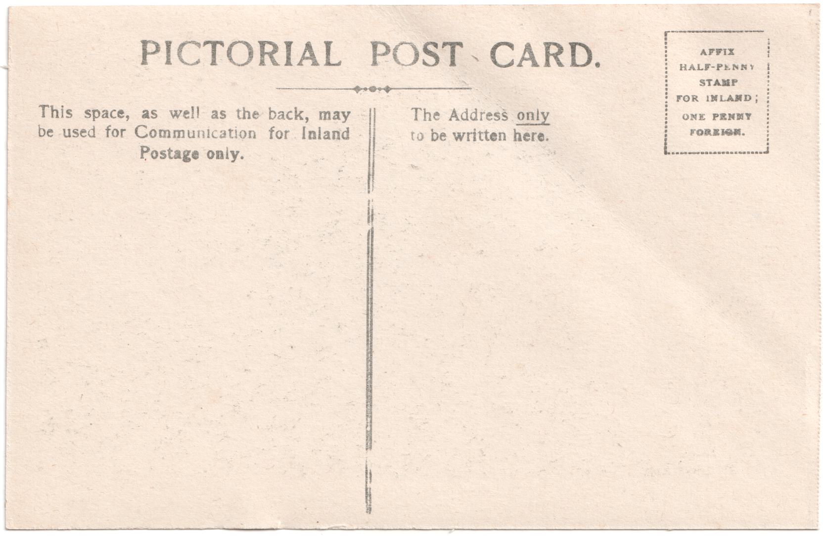 Unposted, but the postage rates put this card as pre-1918. Posted examples from this series are dated 1905/1906. Braggs cycle shop doesn't appear to be open in this view, so that also puts the card pre-1913.