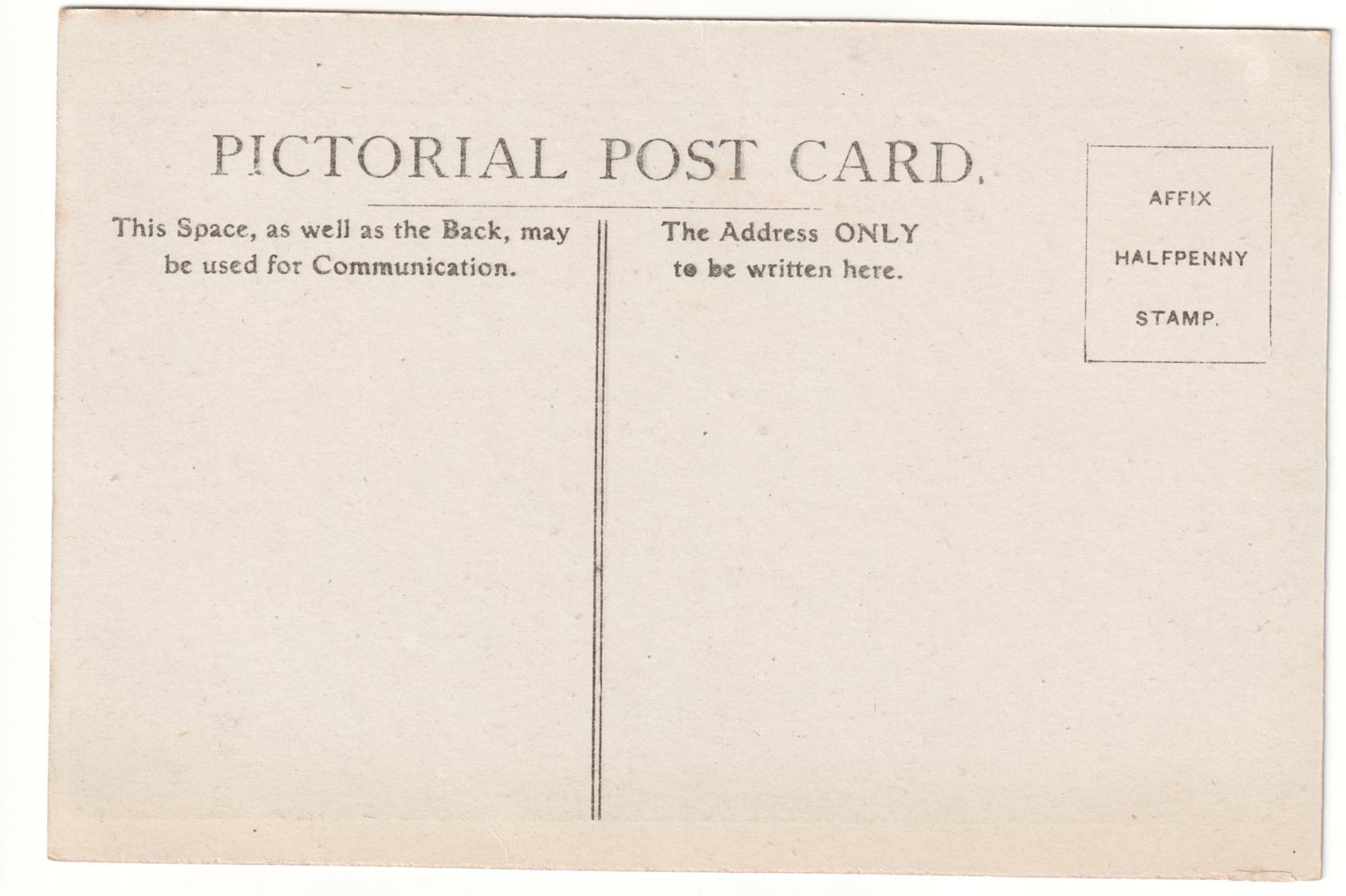 This card appears to be from the same series and publisher as 19050906-OckStreet. This is based on the half-tone printing, script in the bottom left of the image, and identifical reverse printing. I'm not sure who the person on the left might be - they appear to be wearing a small apron so it's likely that they worked in some sort of skilled or technical trade.