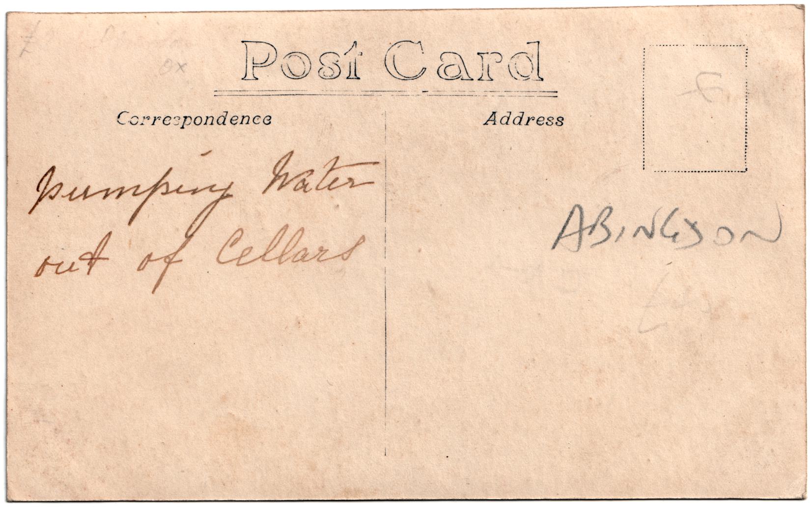 Possibly 30th April 1913. The Faringdon Advertiser of May 3rd 1913 describes floods that filled the cellars on Stert Street, Broad Street and the Vinyard on Tuesday the 29th April 1913. On the following Wednesday the fire brigade used hand pumps to empty the cellars of water. Look closely and you'll see a delivery bike belonging to Cottrells - a butcher on Stert Street.