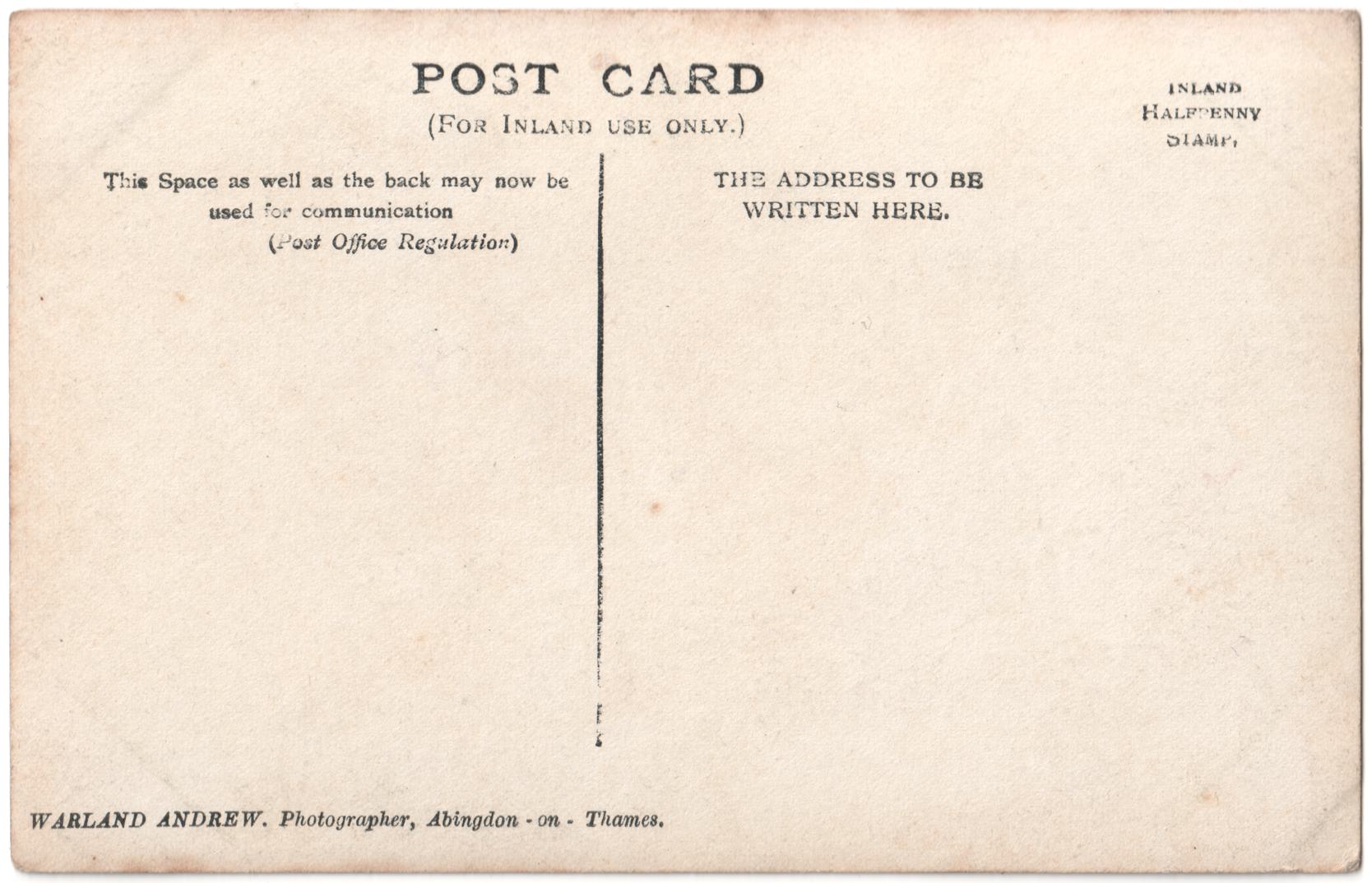 I'm not certain of the date but Warland Andrew was most prolific in the Edwardian Period. This photograph shows the trees outside of Long Alley almshouses having not long been pollarded. Two men stand outside the houses. I'm hoping that I can collect enough dated cards of the almshouses to narrow down a date for this photo based on the growth before and after pollarding.
